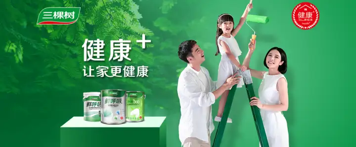 三棵树健康漆:面对立邦、多乐士主打“色彩”的竞争格局,确立“健康”为战略破局点,通过“鲜呼吸”产品命名、“8小时住新家”广告语及健康相关视觉符号,构建“健康漆”品类认知,实现差异化突围。
