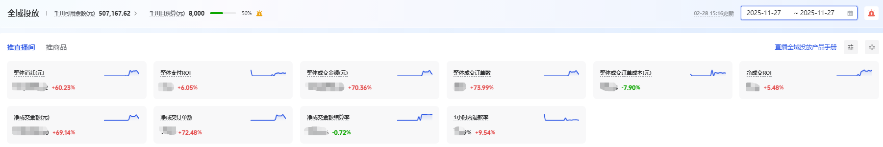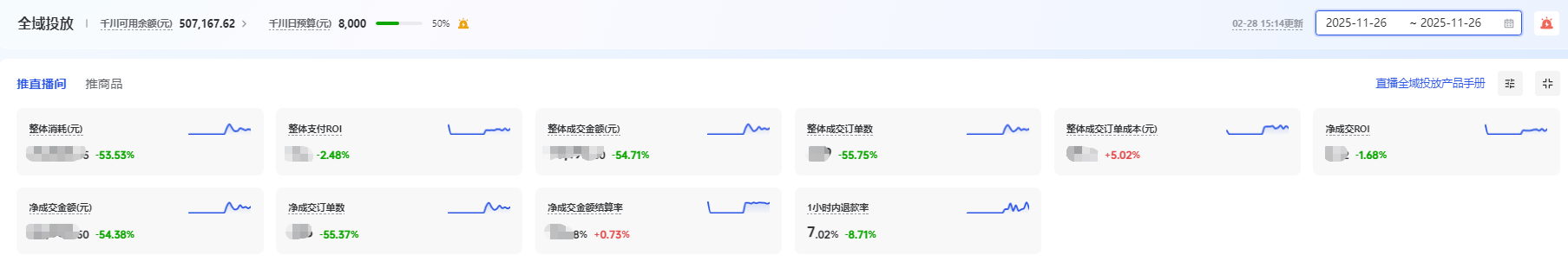 这个阶段最忌讳的,就是“多调整计划”。很多老投手习惯了标准推广的路子,不停地去对计划进行调控追投控量等操作,忽视对直播间和视频内容的优化,结果账户数据被切得七零八落,系统收到的全是“脏数据”,冷启动一直过不去。