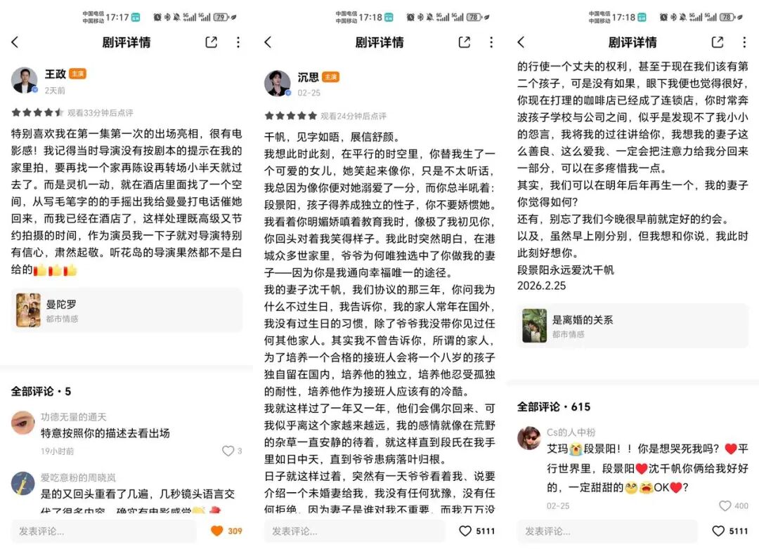 真人短剧能够给观众带来的互动感和强连接性,也是AI漫剧无法比拟的核心优势。比如《红糖姜汁》《曼陀罗》《是离婚的关系》等剧的主创团队,在剧集上线后,通过社交平台、空降短剧评论区等方式,与观众一起看剧聊剧,及时回应观众的疑问和反馈,拉近了与观众的距离。