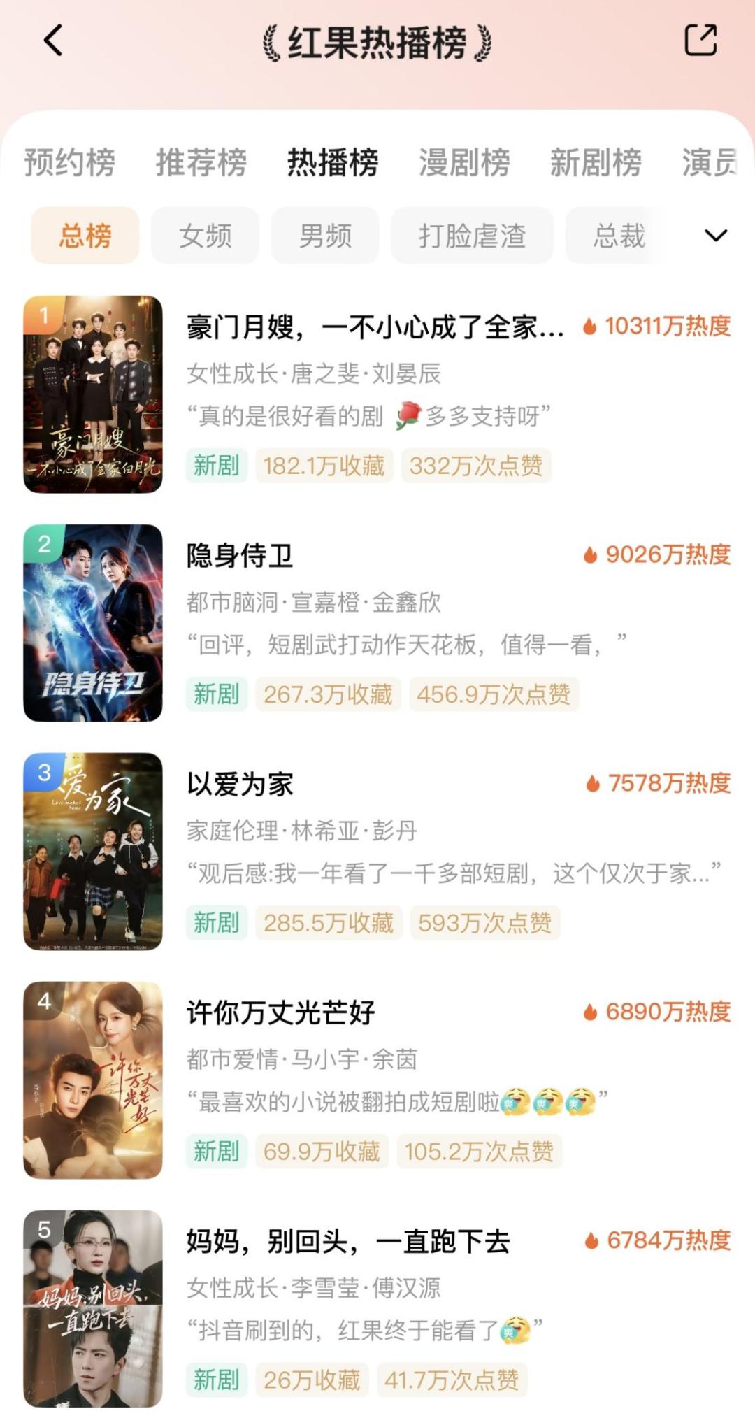 就在前不久,由阅文短剧金牌编剧张宁改编阅文同名IP的《隐身侍卫》成为首部双破亿的男频短剧,热度值破1亿、播放量破10亿,打破男频短剧历史纪录。这两天《隐身侍卫》热度退居TOP2后,同样改编自阅文同名IP的《许你万丈光芒好》上线后也冲至热播榜第二。目前的红果热播榜前五,有两部是阅文短剧出品。