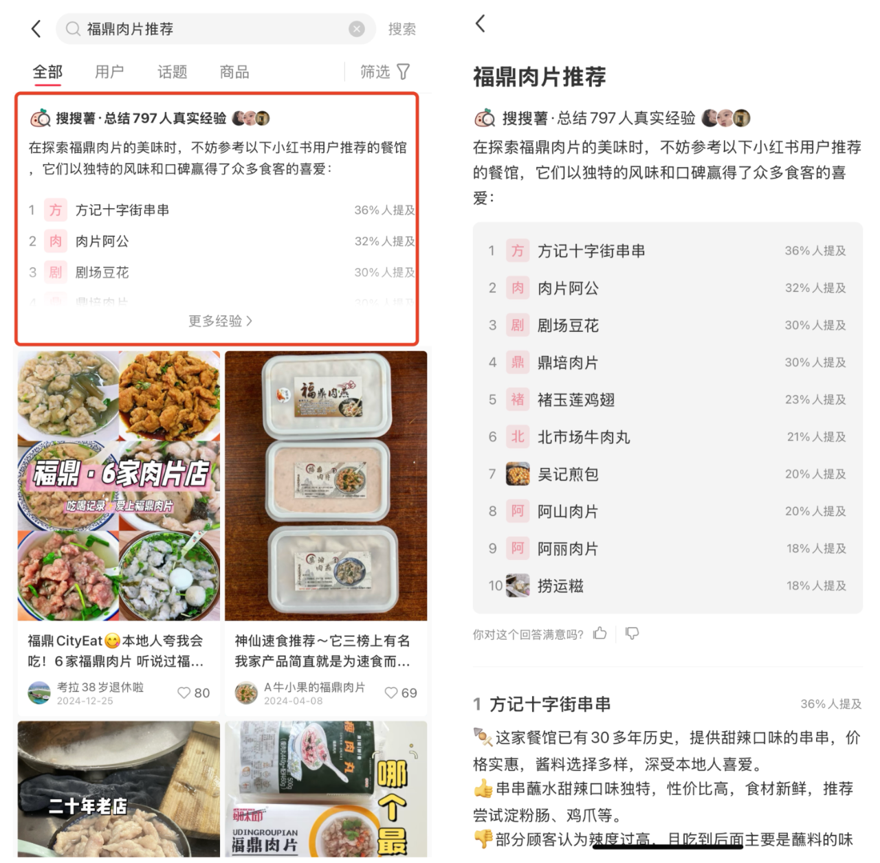 小红书APP端搜索结果页嵌入搜搜薯AI总结经验