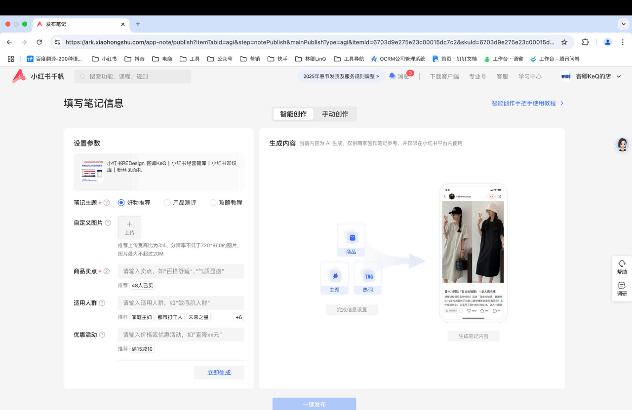 小红书千帆平台 -> 笔记 -> 笔记发布 -> 智能批量创作