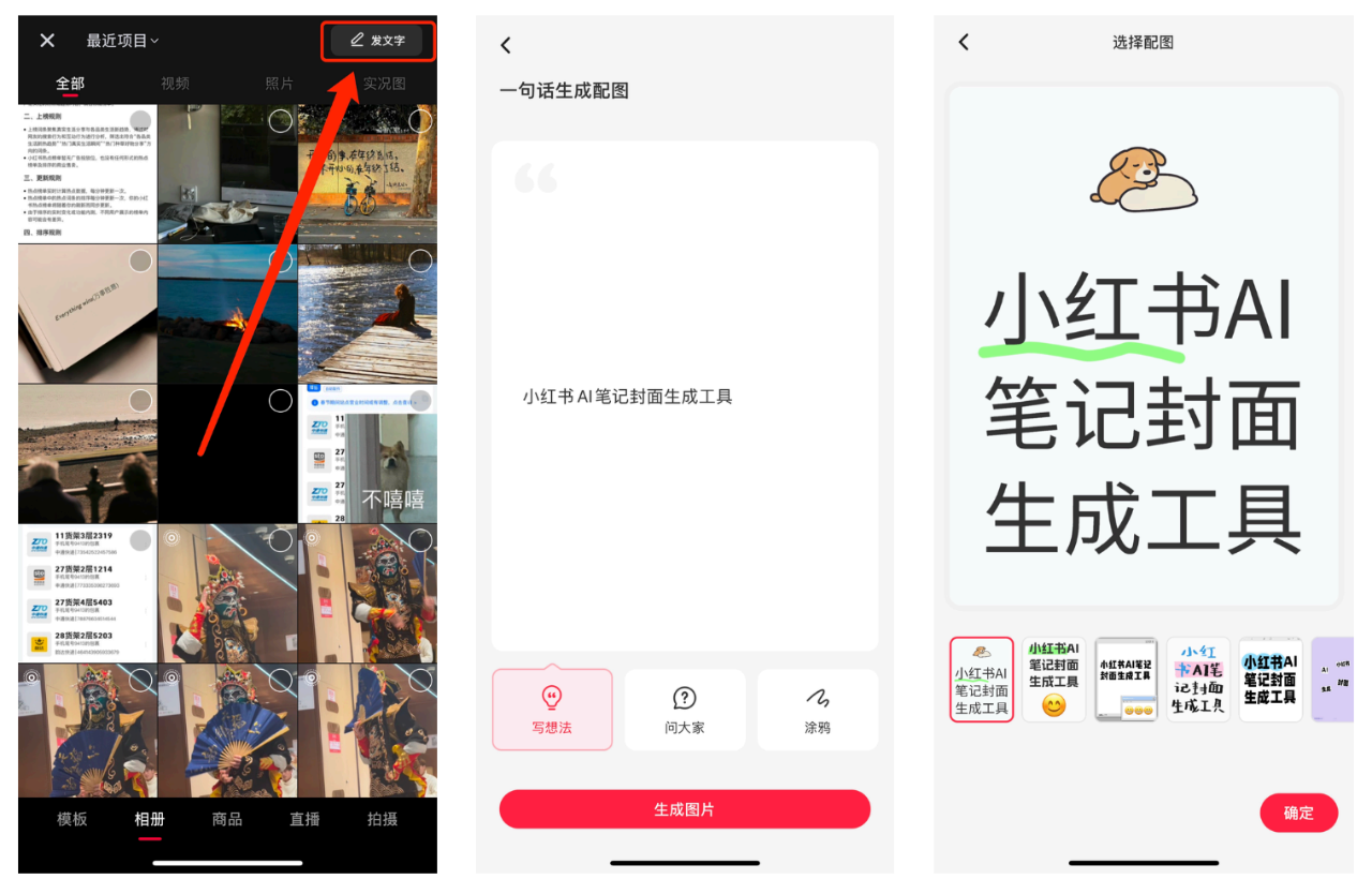 小红书APP端 -> ➕ -> 右上角「发文字」 -> 输入文案 -> 一键生成大字报封面