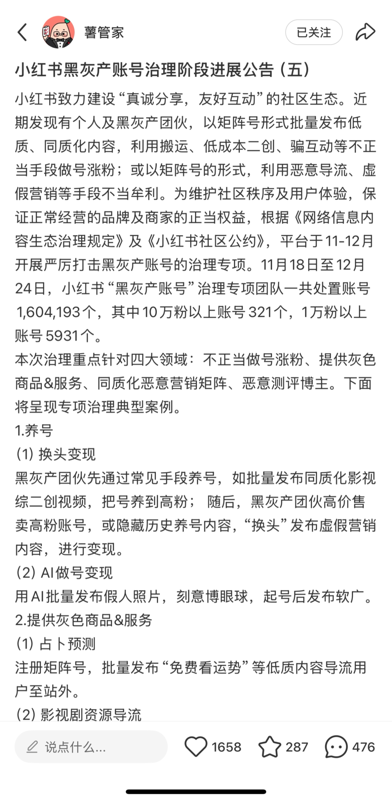 而之所以会有这个判断,纯粹是因为小红书闭环电商在蓬勃发展,如果横向参考抖音闭环电商的发展,再结合小红书之前也的确有暂停过小红星和CID这些,是有这个可能性存在的。