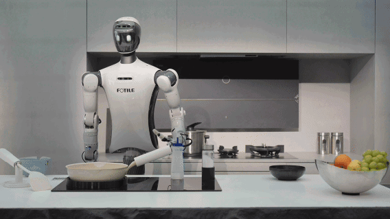 在方太的机器人厨房中,高精度机械臂完成接水、投料的精细动作;人形机器人COOK在灶台前完成倒油、翻炒等复杂烹饪操作,还能独立完成食材处理、盛菜摆盘、餐后清洁等全套流程。