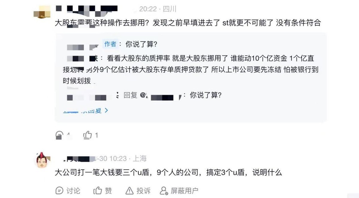 说实话,在上市公司1亿元资产不翼而飞,9亿元资产被紧急冻结的背景下,万千中小股东们有些担忧和怀疑是正常的。