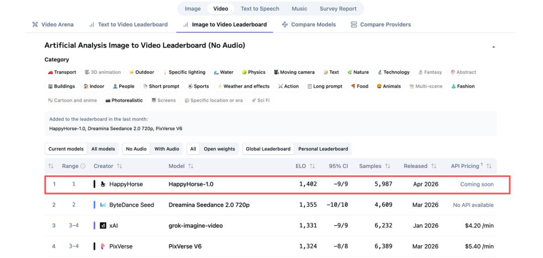 3 月 19 日,字节旗下剪映推出了小云雀 Agent,进一步拉低了 AI 创作的使用门槛;4月2日,Seedance 2.0 API 正式面向企业用户开放公测,这意味着专业级视频生成能力即将被标准化、可调用化,个人与中小团队可低成本产出高质量内容,直接冲击传统 “人力堆砌” 的规模化工厂模式;而在4月8日,一款名为HappyHorse-1.0 的文本转视频模型,悄然登顶权威AI评测平台Artificial Analysis的AI Video Arena排行榜,以更高的Elo分数压过了Seedance 2.0。