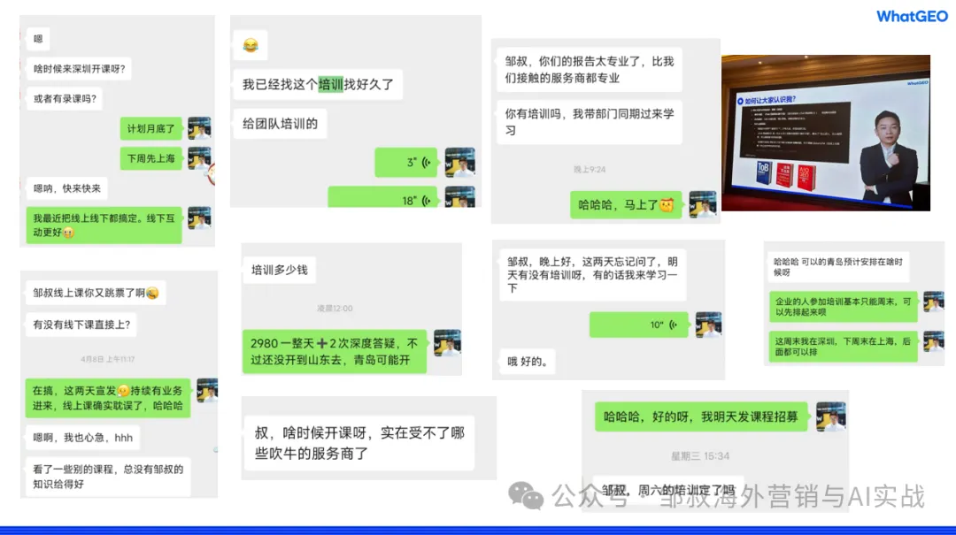 为了让大家更好的掌握GEO技能,我将过去只为大客户做的企业内训,开放为“GEO实战训练营”,希望能让你快速掌握GEO技能。