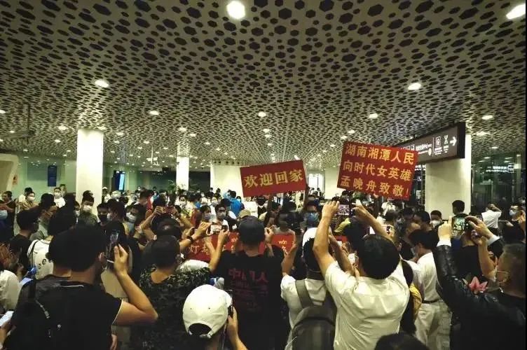 同时,在机场,人民更是热情沸腾,向时代女英雄致敬,欢迎晚舟回家。