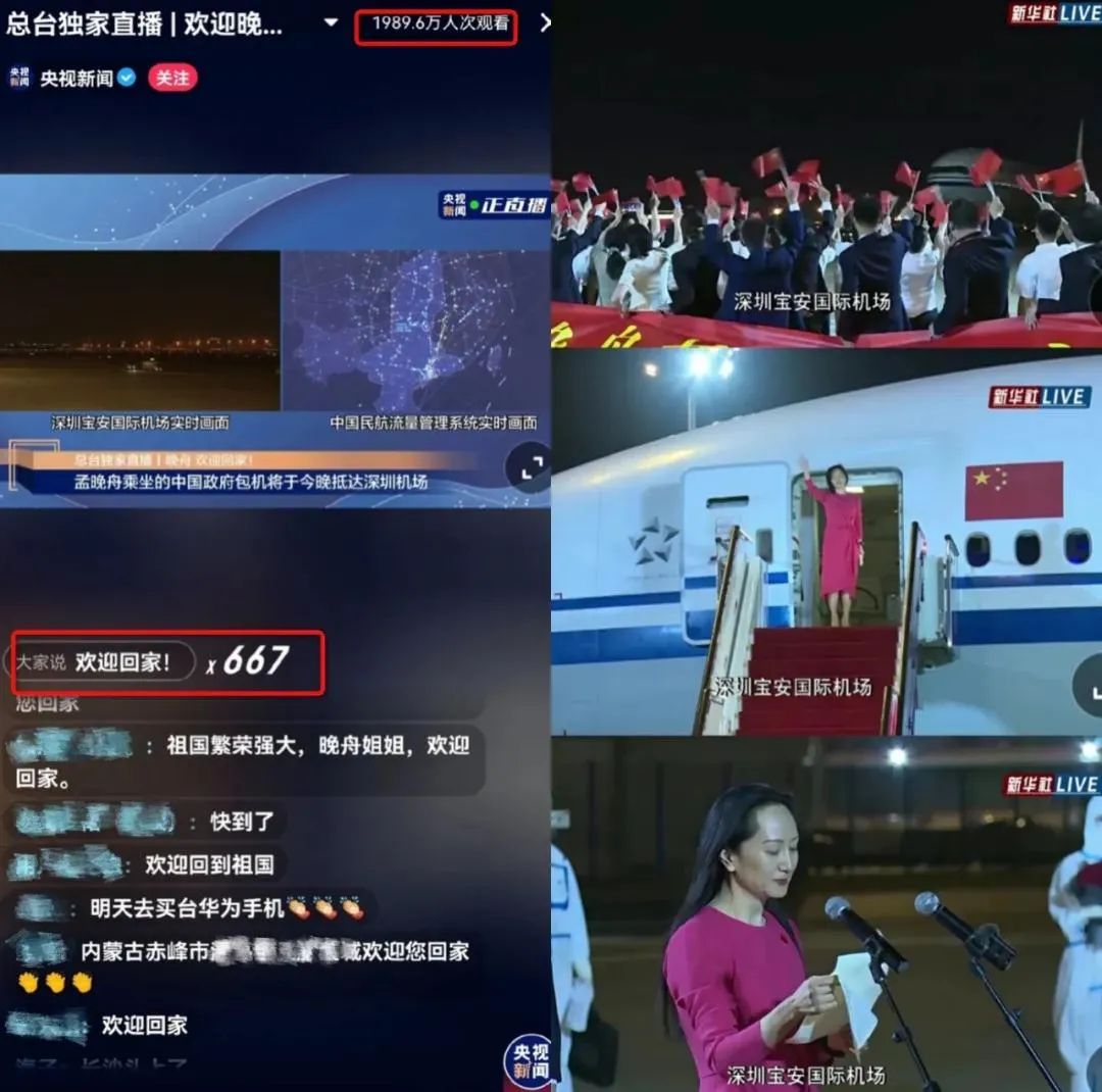 孟晚舟的话瞬间让网友破妨了,当晚,千万网友在线“云接机”,在评论中表示“支持国产”“支持华为”。
