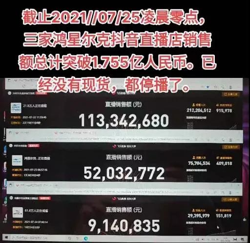 据了解,7月22日当晚,鸿星尔克的淘宝直播间就涌入200多万人次的网友;而根据京东发布的报告显示,仅仅就23日一天,销量就增长超52倍。有人统计,截至25日凌晨0点,三家鸿星尔克抖音直播店总销售超过1.7个亿,累计观看人次破3亿!