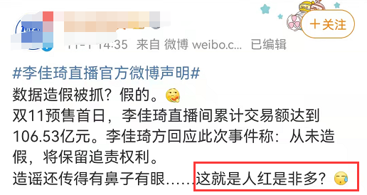 结合直播的数据造假环境,以及李佳琦去年到今年负面来分析,这次外界有人炒作李佳琦数据造假,也不是没有道理的。