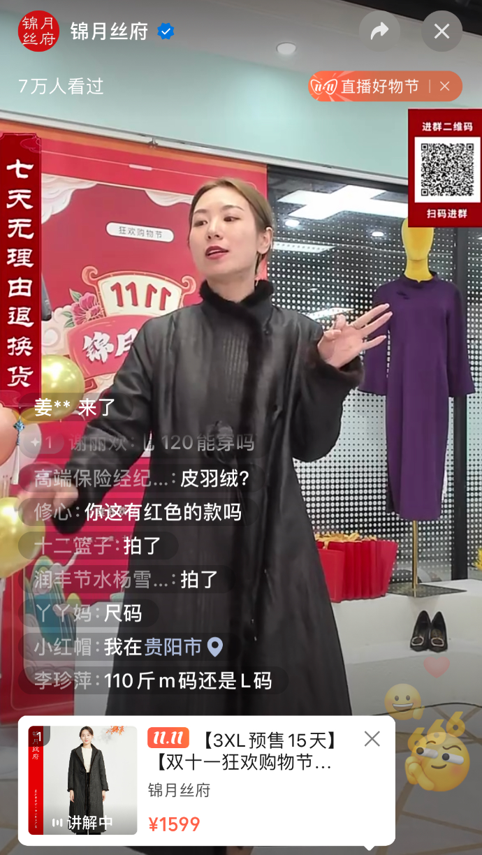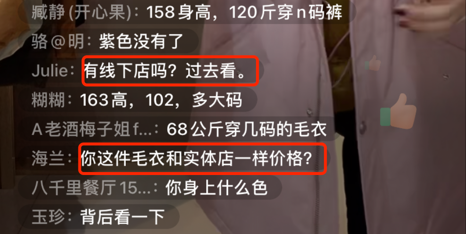 最近,徐星想给妈妈买一件羽绒服,便在一个羽绒服品牌门店的直播间里留言,主播一一认真的上身试穿、介绍面料、版型和针脚走向,甚至还问他妈妈的喜好,称可以去线下试穿,门店有货。