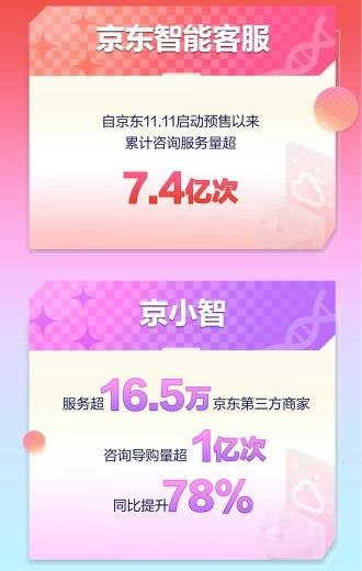 据官方数据显示,11月10日晚8点前10分钟,每秒用户访问峰值同比提升124%;京东智能客服11.11期间累计提供服务超7.4亿次。
