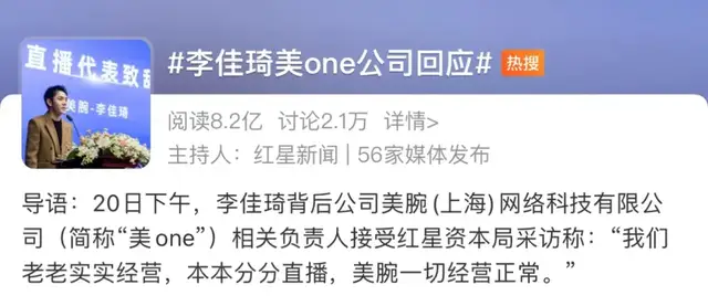 美one公司对各方回应,老老实实经营,本本分分直播,一切经营正常。李佳琦是否躲过一劫,业内众说纷纭。同样照常开播的还有罗永浩的“交个朋友”。