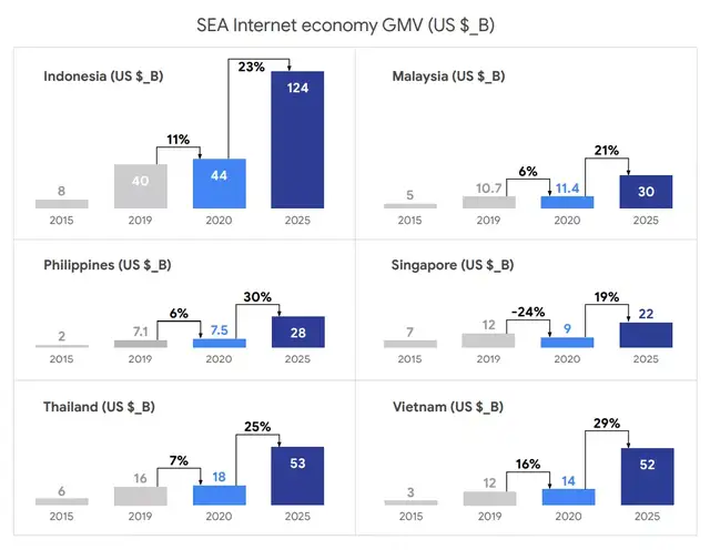 这种情况下,无标的可看的投资人也来加码。“在疫情期间,东南亚地区反而有利于巨头出海。”一位长期关注出海投资的业内人士告诉零态LT(ID:LingTai_LT)。在他看来,年轻的人口红利、不断提升的电商渗透率、优越的地理位置,以及疫情期间加速线上化的趋势,让东南亚成为巨头势必要拿下的香饽饽。